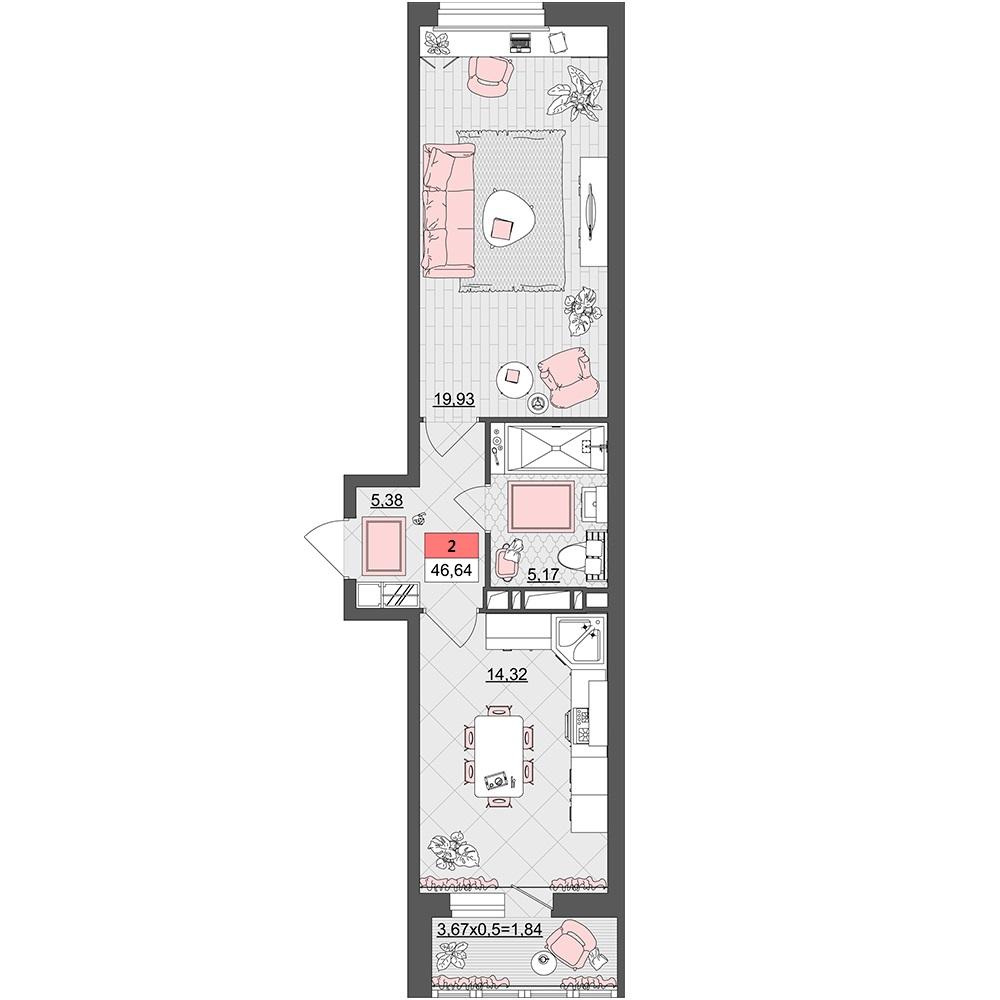 Продается однокомнатная новостройка, 45 кв.м., 8/19 эт