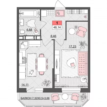 | Комнат в квартире | 1 |