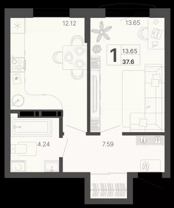 Продается однокомнатная новостройка, 41 кв.м., 8/16 эт