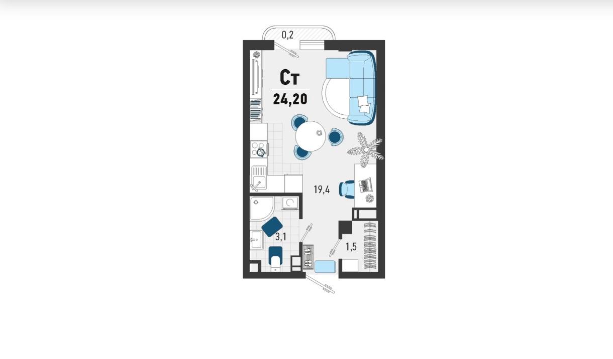 Продается однокомнатная новостройка, 26 кв.м., 3/3 эт