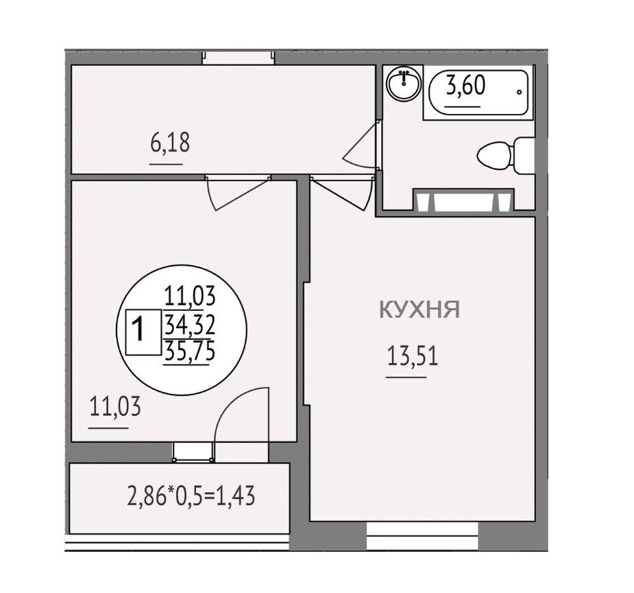 Продается однокомнатная новостройка, 41 кв.м., 4/16 эт