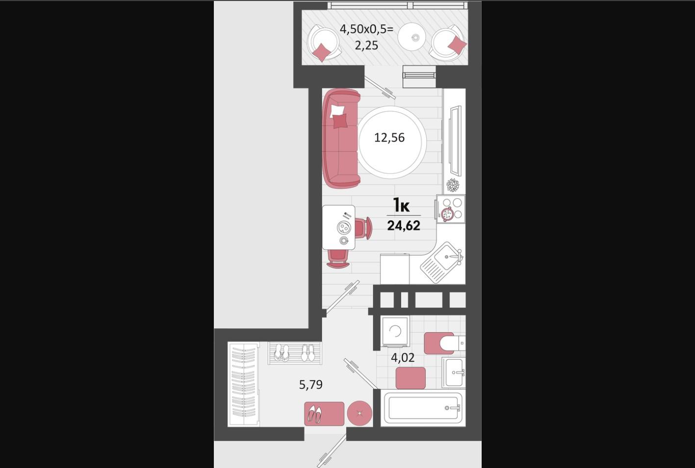 Продается однокомнатная новостройка, 26 кв.м., 4/21 эт