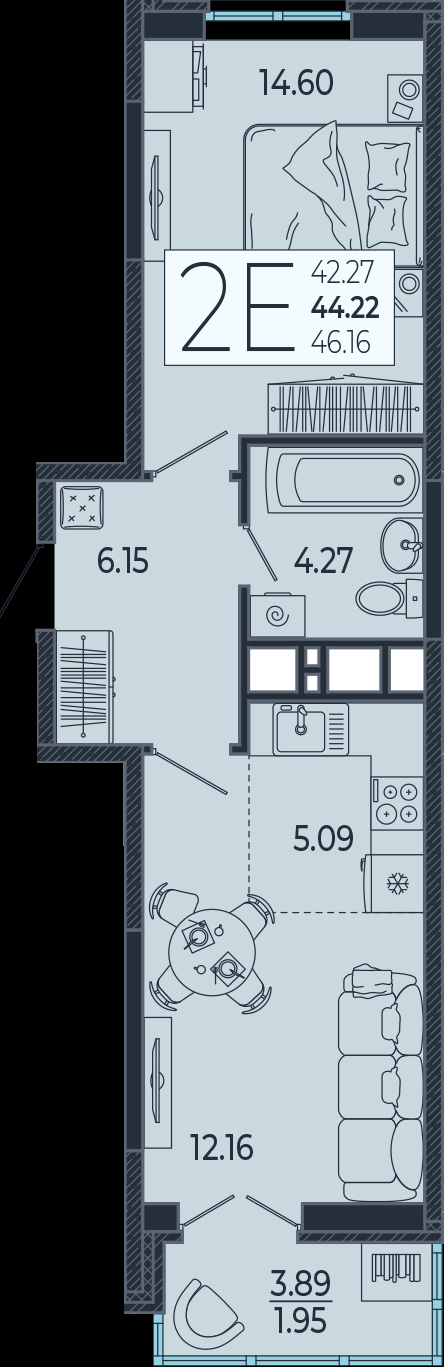 Продается однокомнатная новостройка, 41 кв.м., 5/21 эт