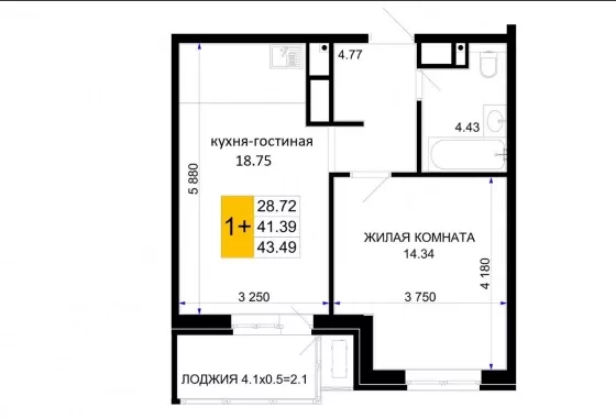 Продается однокомнатная новостройка, 45 кв.м., 5/19 эт