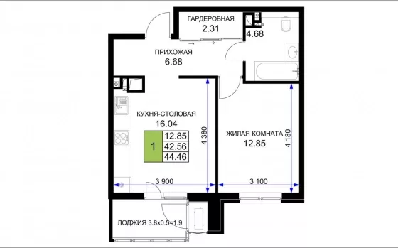 Продается однокомнатная новостройка, 45 кв.м., 6/16 эт