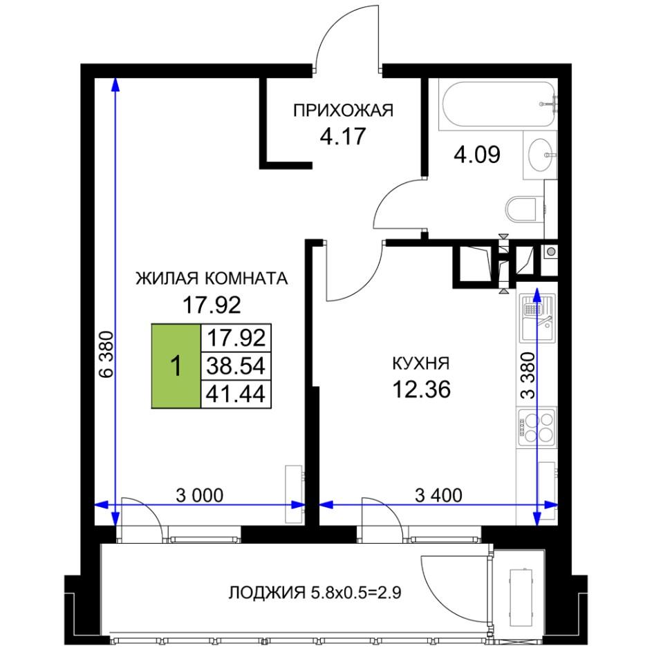Продается однокомнатная новостройка, 42 кв.м., 8/16 эт