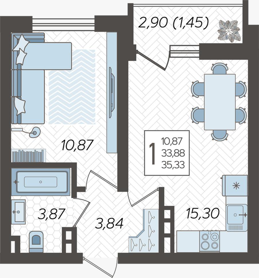 Продается однокомнатная новостройка, 42 кв.м., 7/21 эт