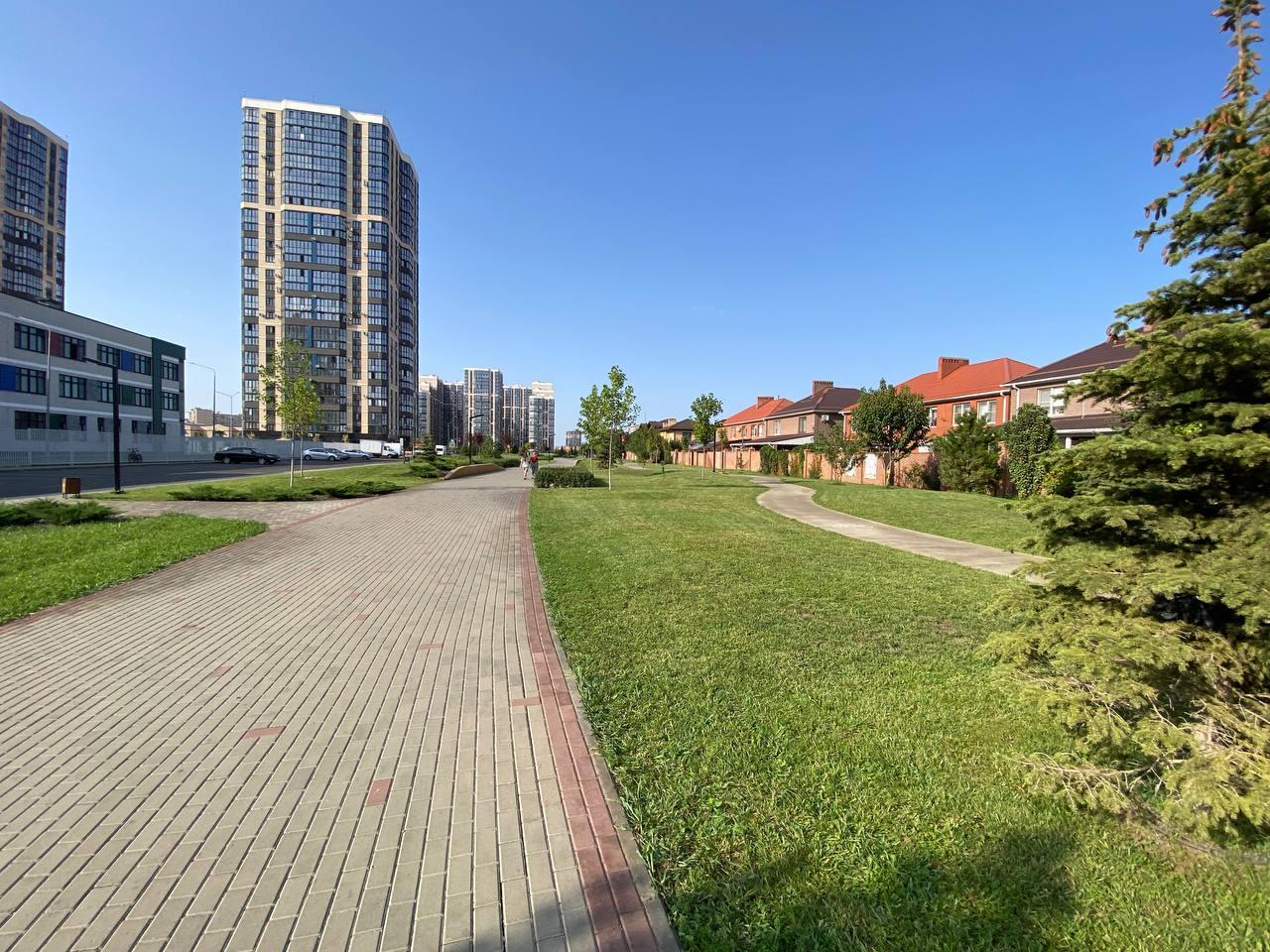 Вдоль дома огромная алея 1,5 километра и фонтаны
