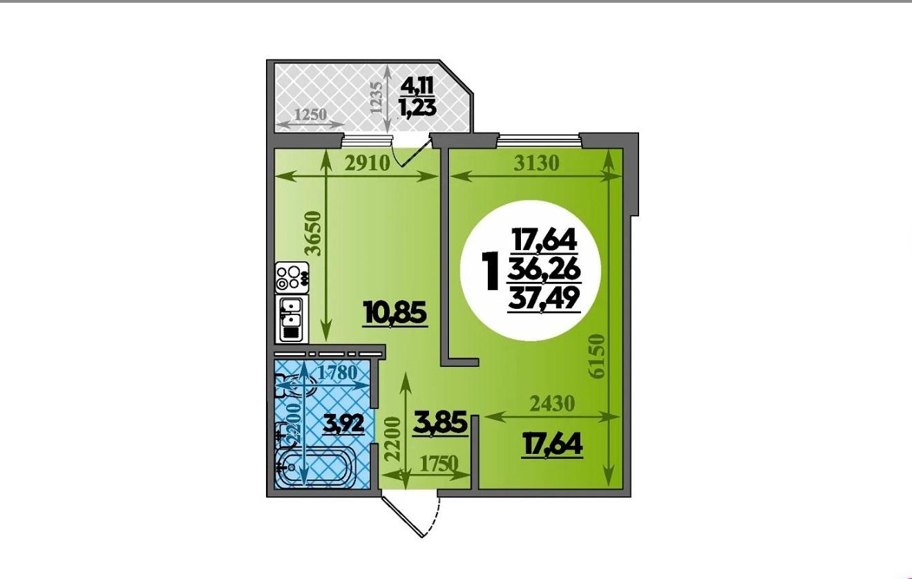 Продается однокомнатная новостройка, 41 кв.м., 5/16 эт