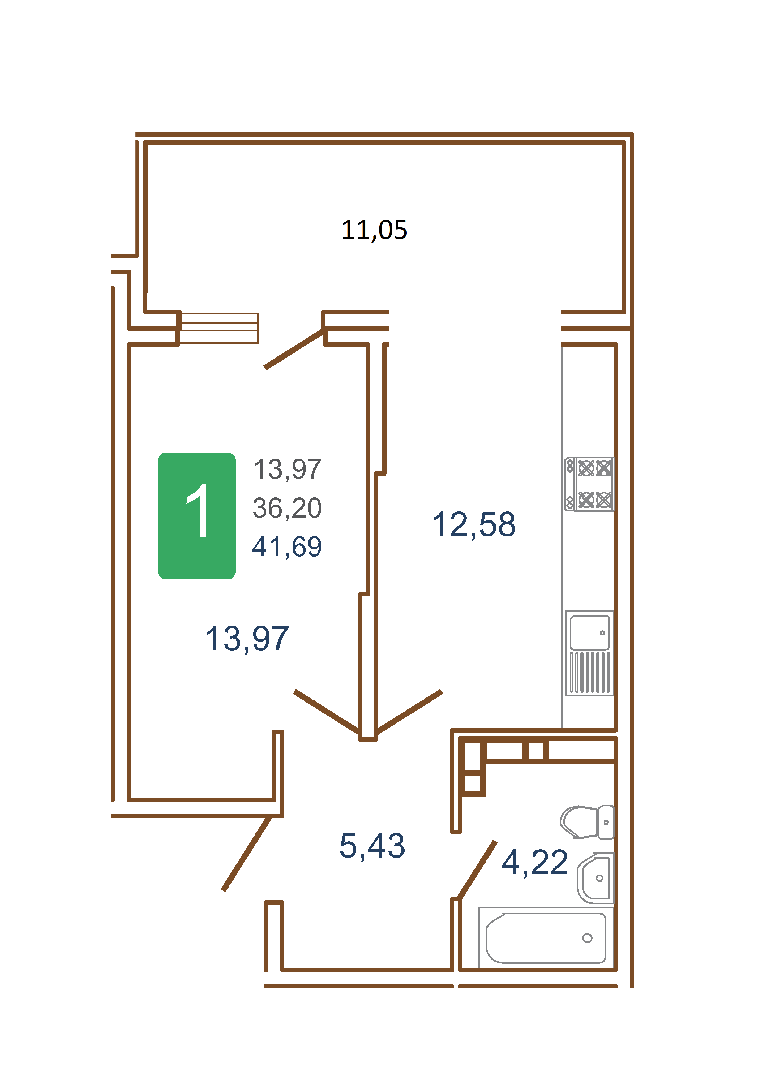 Продается однокомнатная новостройка, 42 кв.м., 3/16 эт