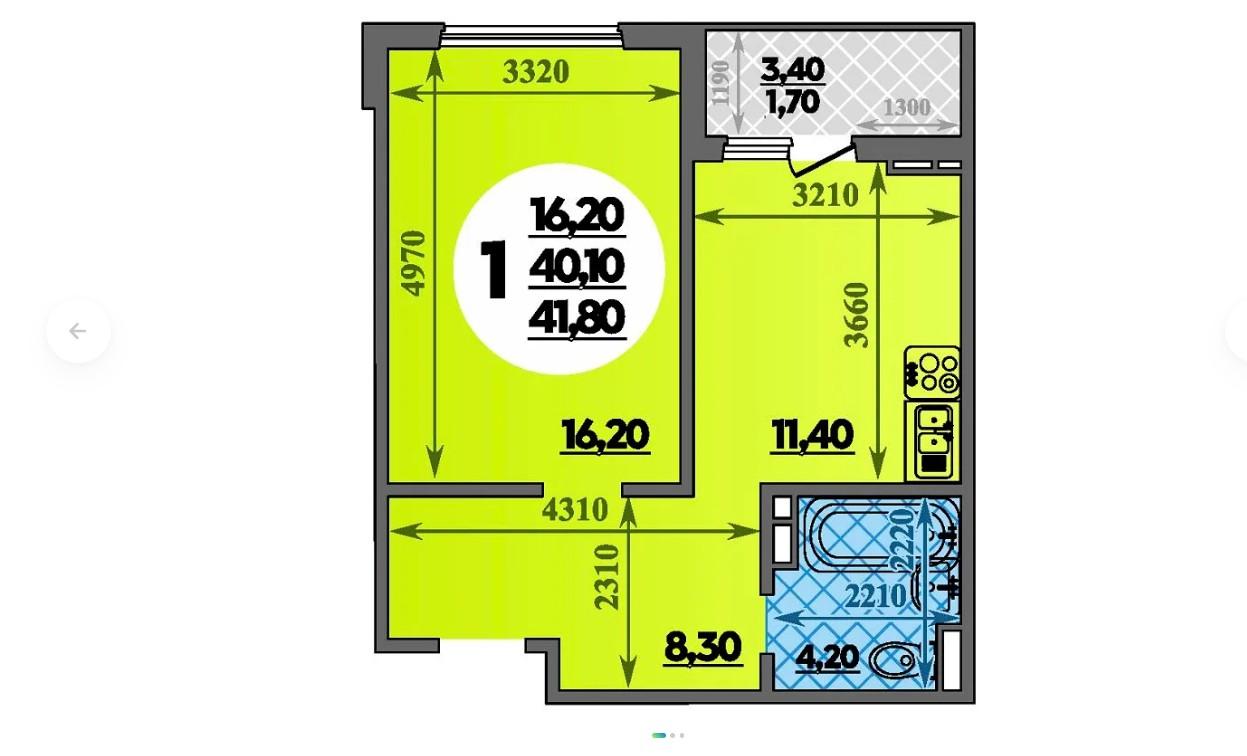 Продается однокомнатная новостройка, 41 кв.м., 8/16 эт