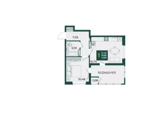 Продается однокомнатная новостройка, 41 кв.м., 10/18 эт