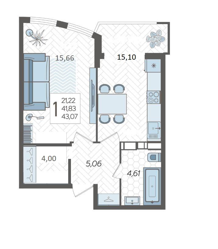 Продается однокомнатная новостройка, 42 кв.м., 5/20 эт