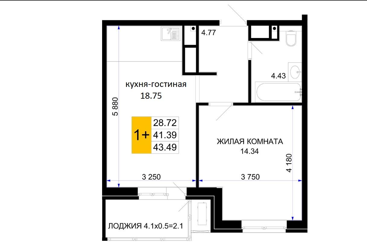 Продается однокомнатная новостройка, 44 кв.м., 7/16 эт