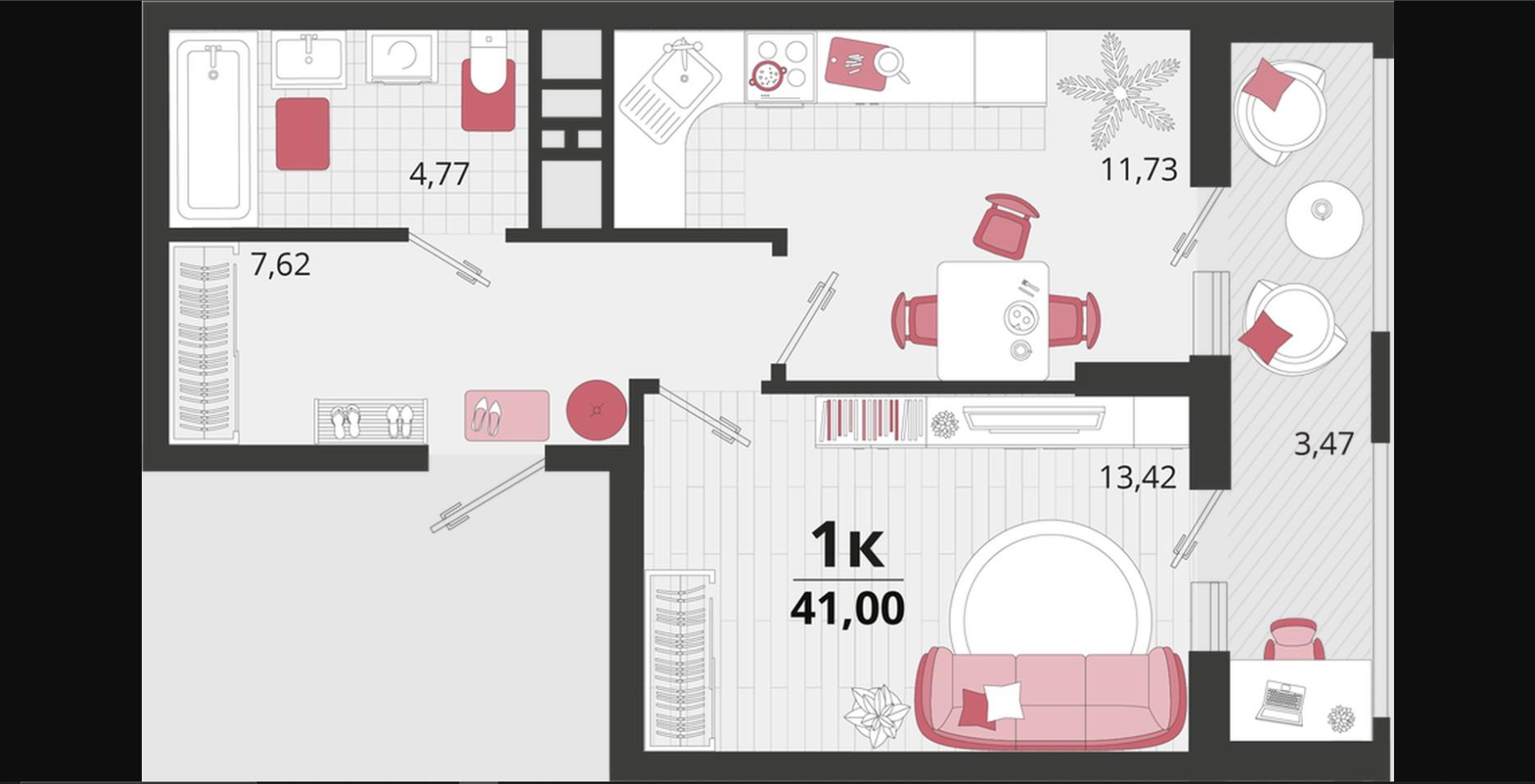 Продается однокомнатная новостройка, 44 кв.м., 7/16 эт