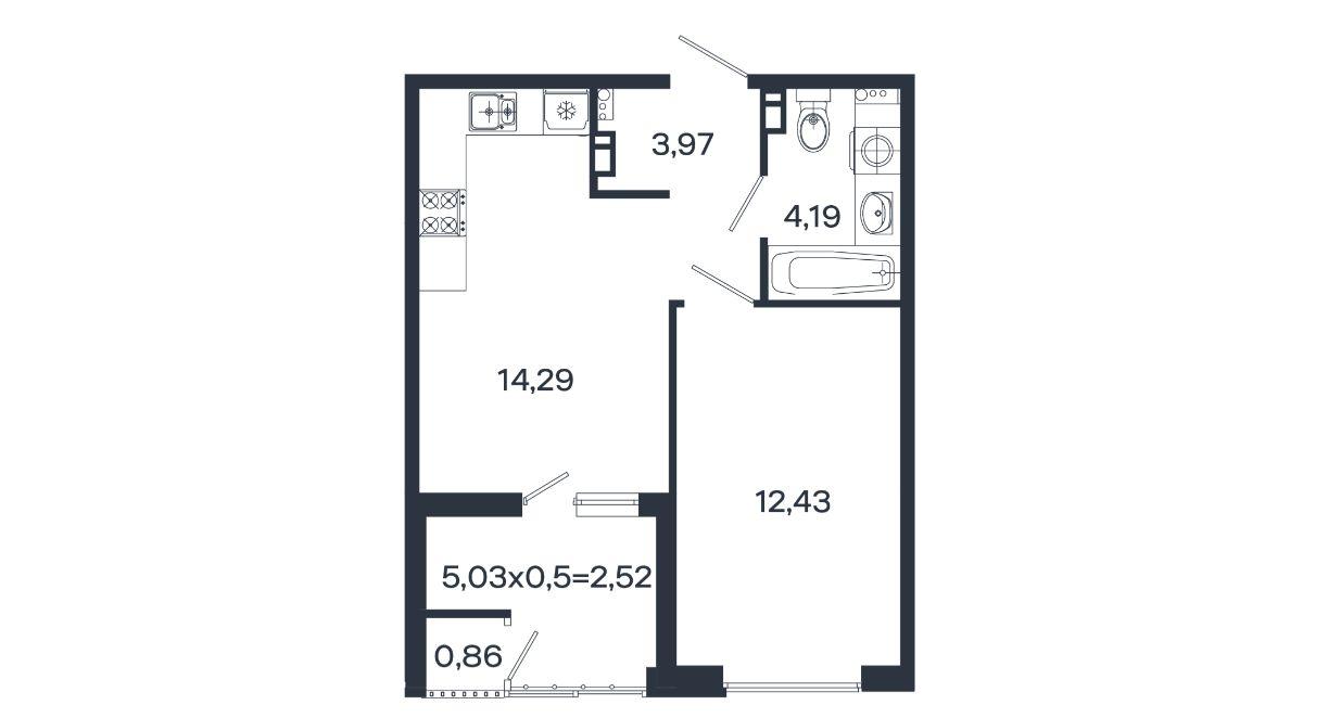 Продается однокомнатная новостройка, 41 кв.м., 5/18 эт