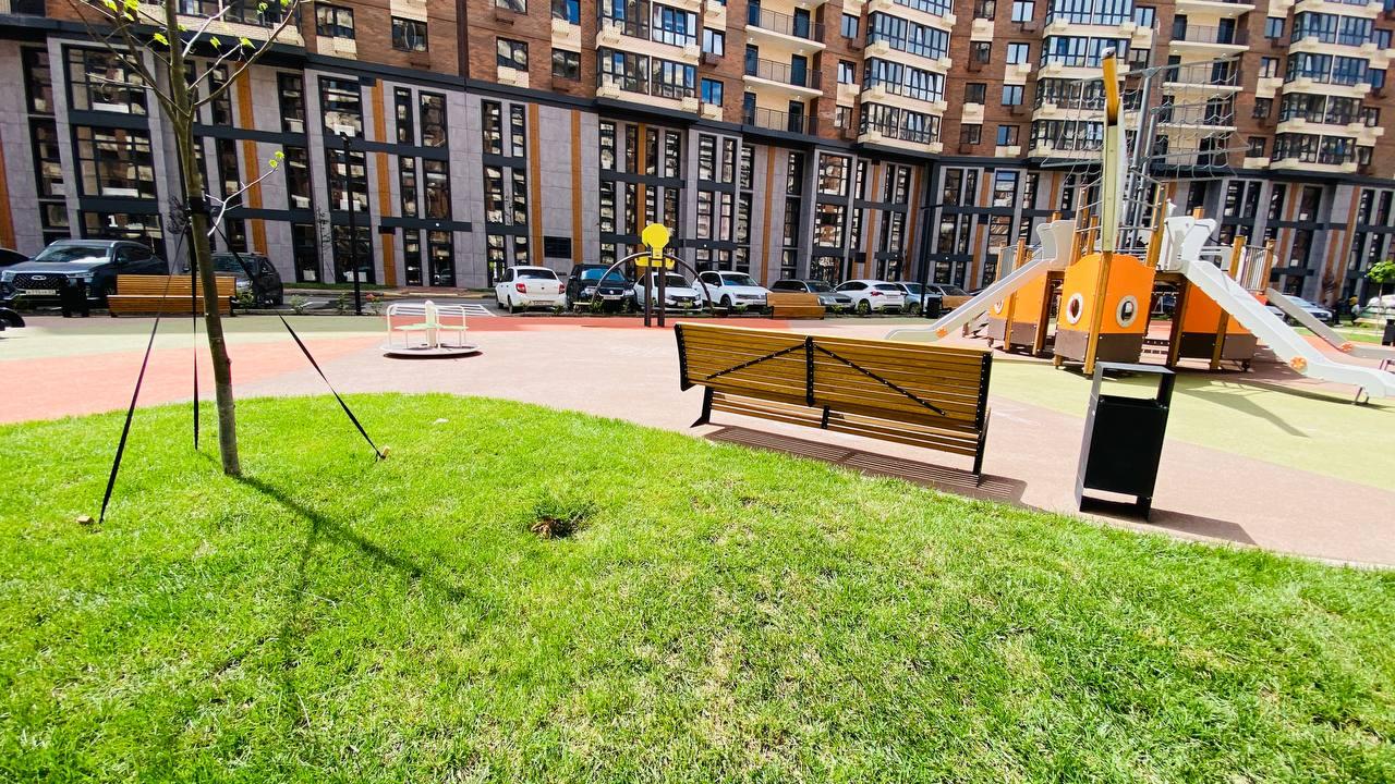 -Возле дома огромная детская площадка, шикарная аллея, монгальная зона.