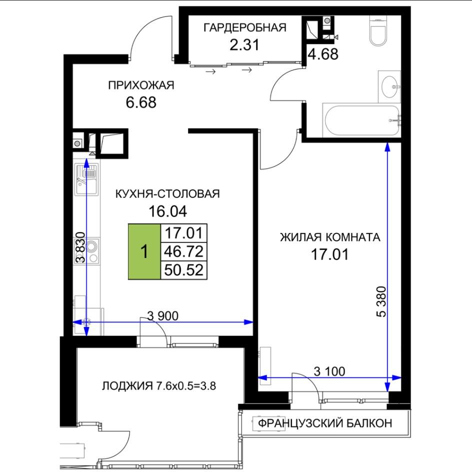 Продается однокомнатная новостройка, 53 кв.м., 5/16 эт