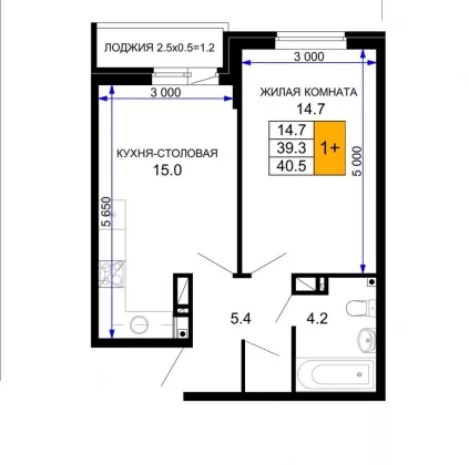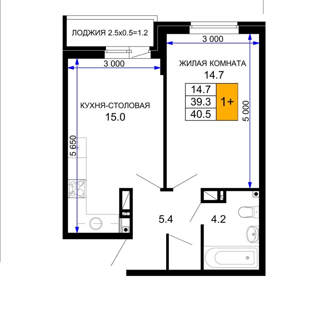 Продается однокомнатная новостройка, 41 кв.м., 4/16 эт