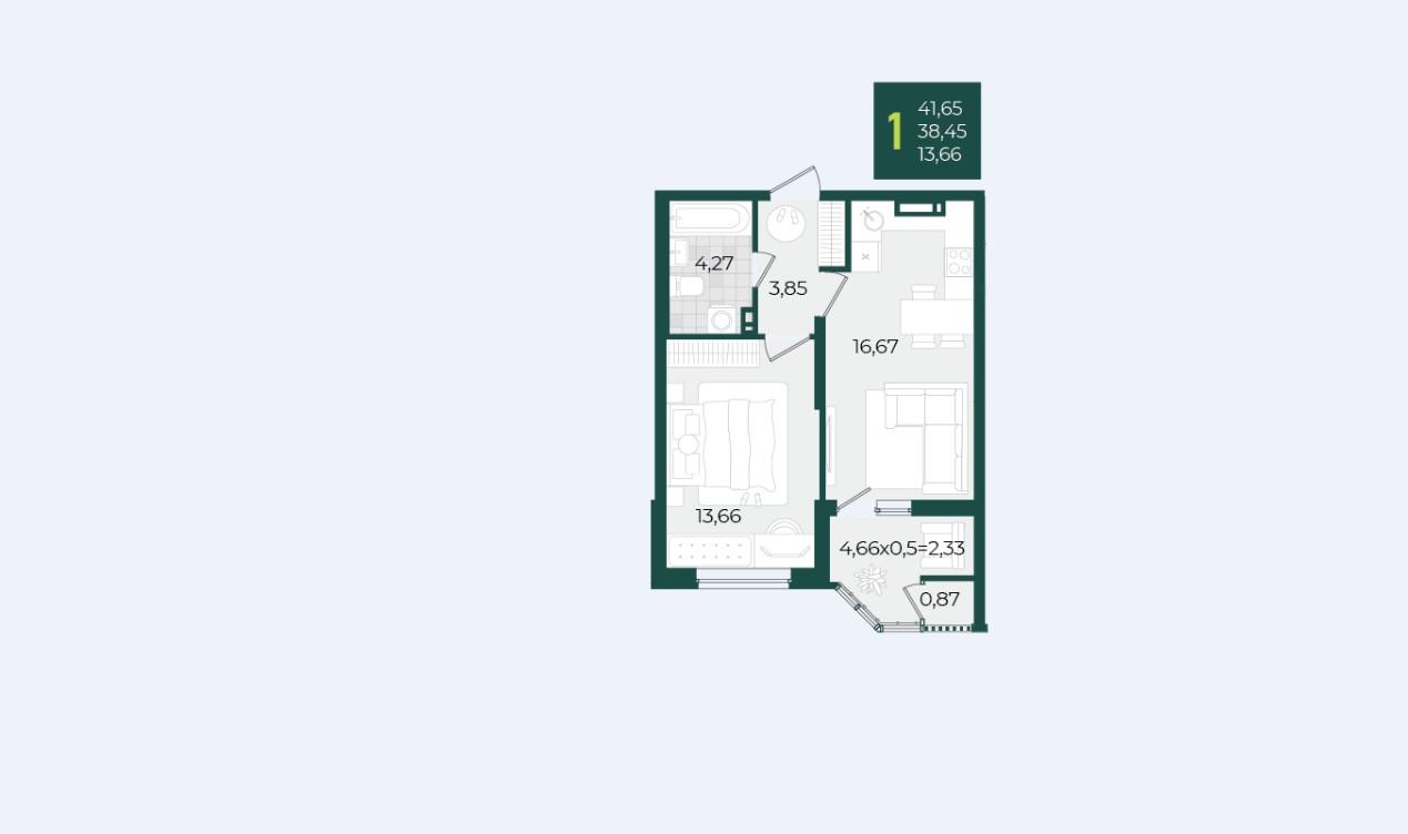 Продается однокомнатная новостройка, 44 кв.м., 5/18 эт