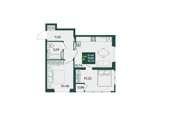 Продается однокомнатная новостройка, 42 кв.м., 4/18 эт