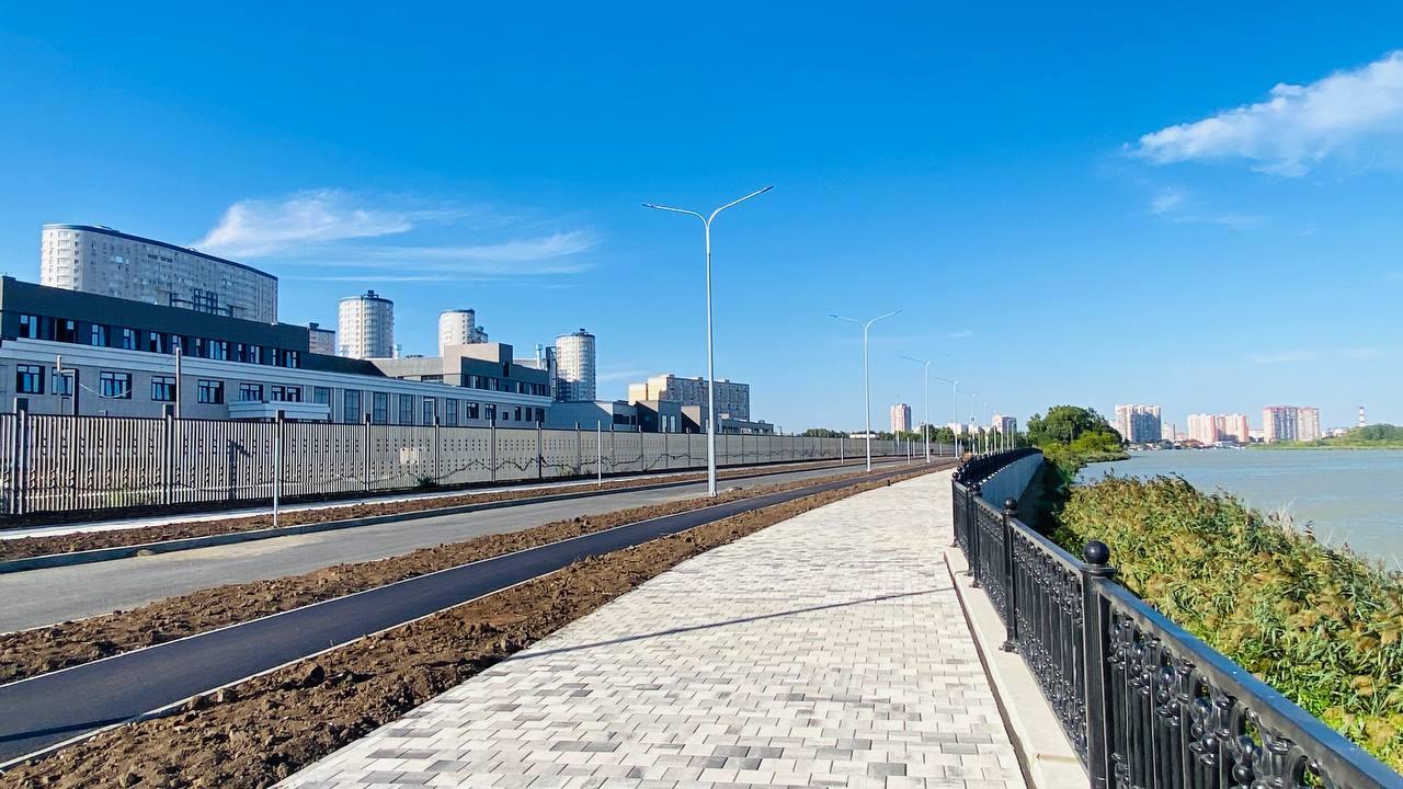 - ЖК расположен в Центральном окpугe г. Краснодар на берегу p.Kубaнь.
