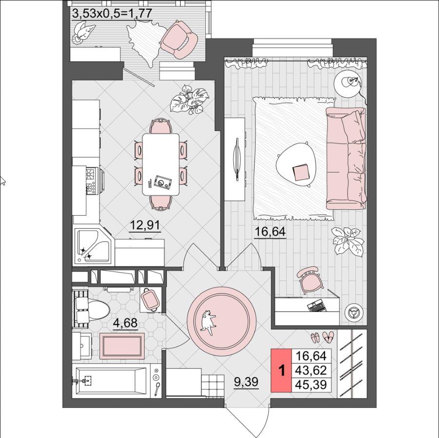 Продается однокомнатная новостройка, 46 кв.м., 5/21 эт
