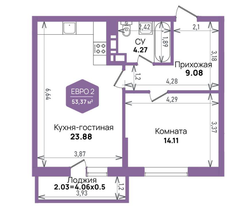 Продается однокомнатная новостройка, 53 кв.м., 7/22 эт