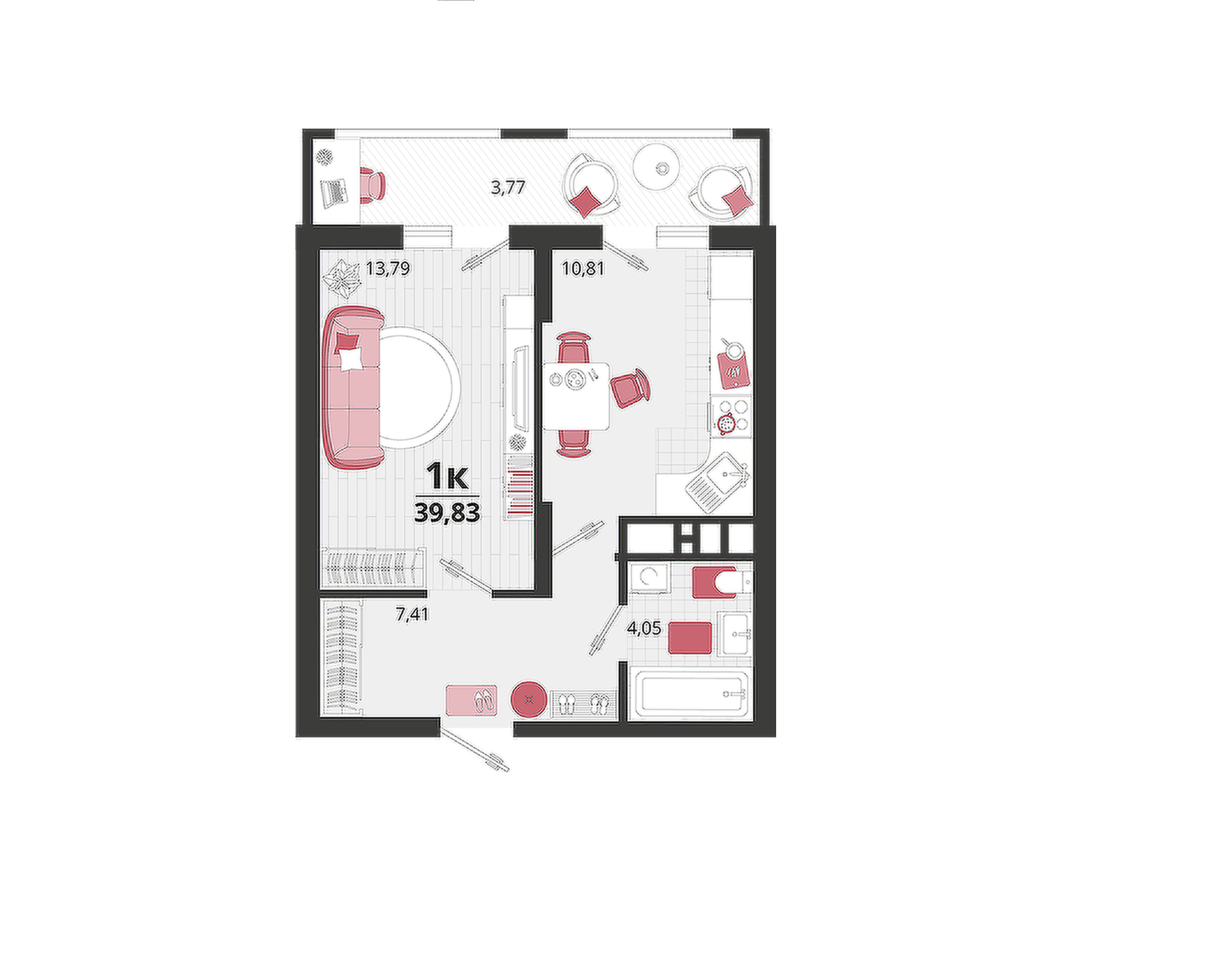 Продается однокомнатная новостройка, 41 кв.м., 5/16 эт