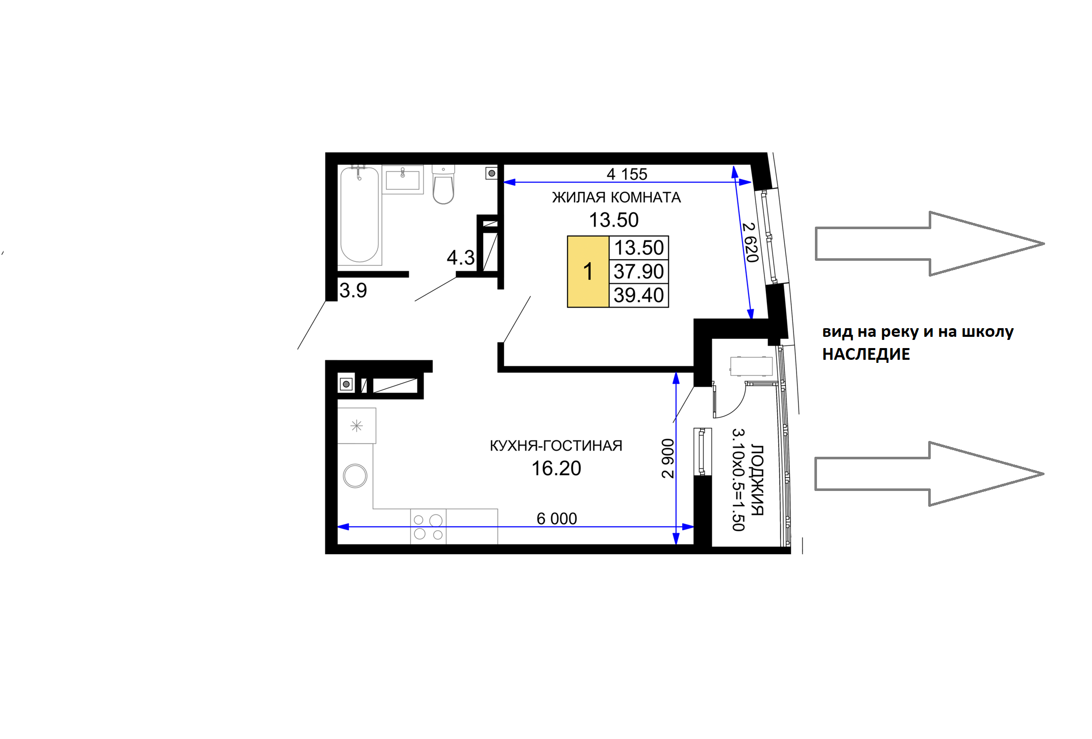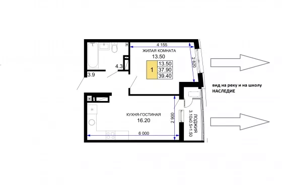 Продается однокомнатная новостройка, 41 кв.м., 12/18 эт