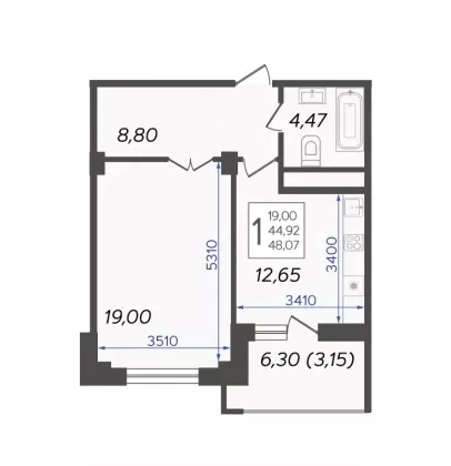 Продается однокомнатная новостройка, 51 кв.м., 14/16 эт