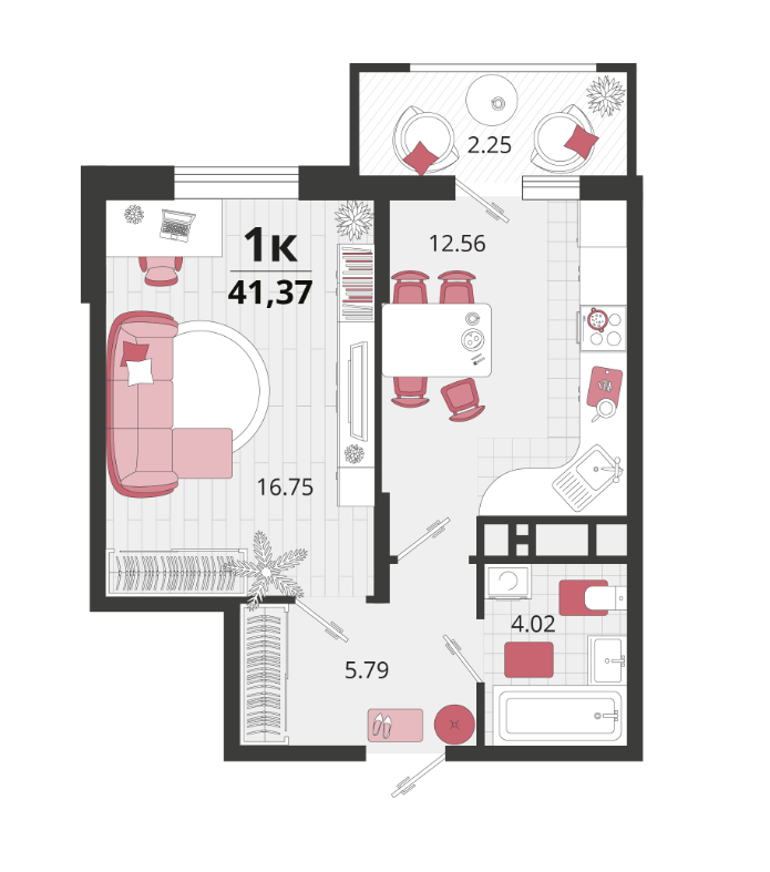 Продается однокомнатная новостройка, 42 кв.м., 8/9 эт