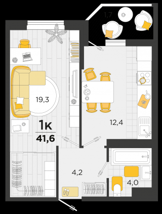 Продается однокомнатная новостройка, 41 кв.м., 9/24 эт