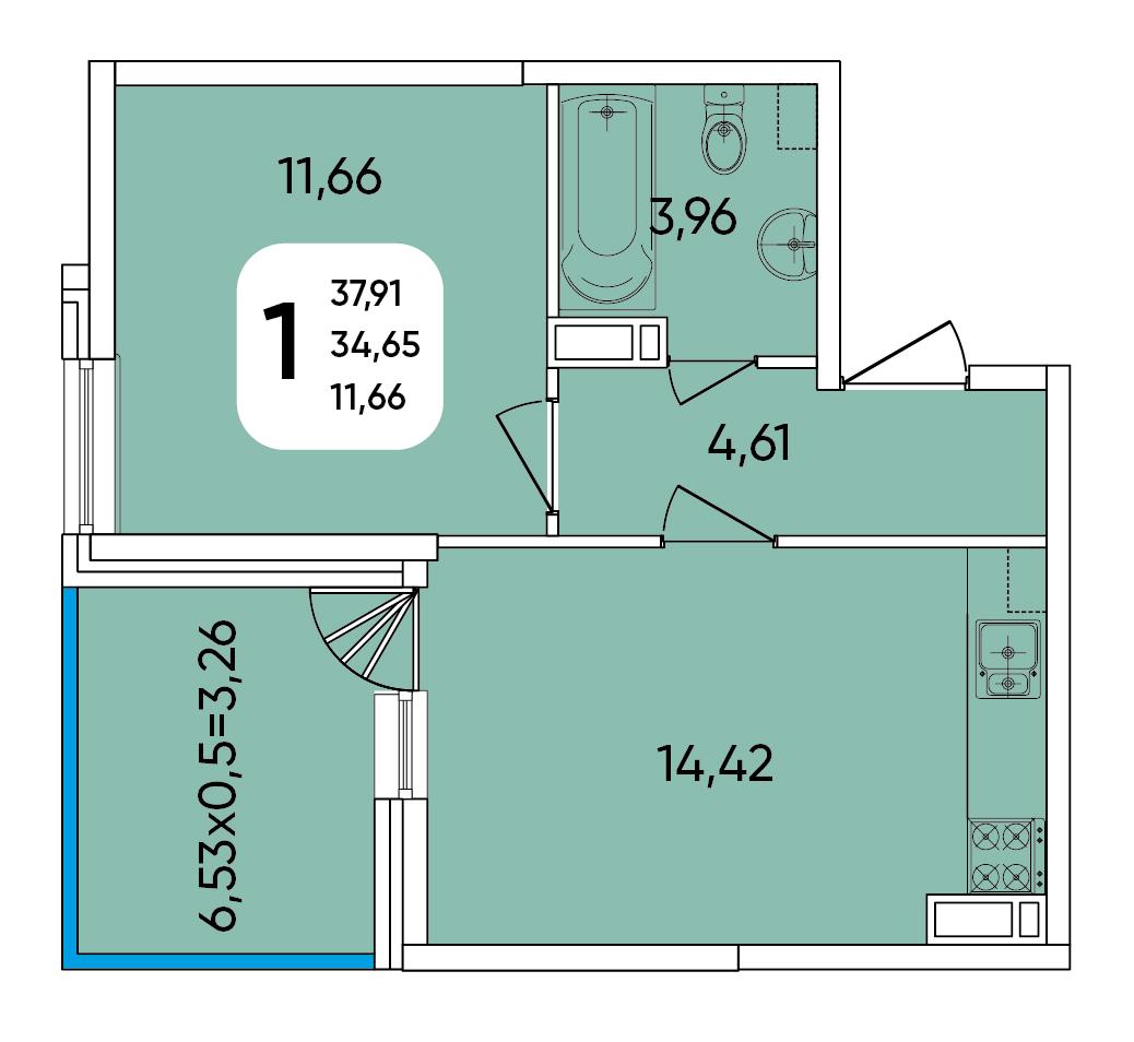 Продается однокомнатная новостройка, 40 кв.м., 5/18 эт