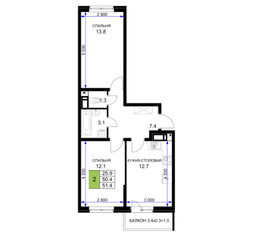 Продается 2-х комн. новостройка, 53 кв.м., 7/16 эт