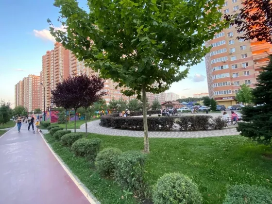 Вокруг дома : 3- школы , 4-садика ,торговый центр и поликлиника .