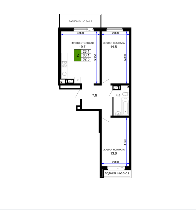 Продается 2-х комн. новостройка, 58 кв.м., 10/16 эт