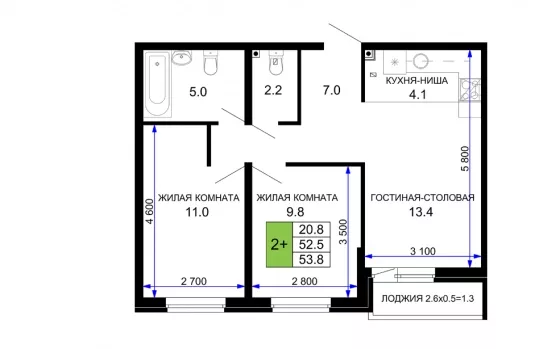 Продается 2-х комн. новостройка, 58 кв.м., 8/16 эт