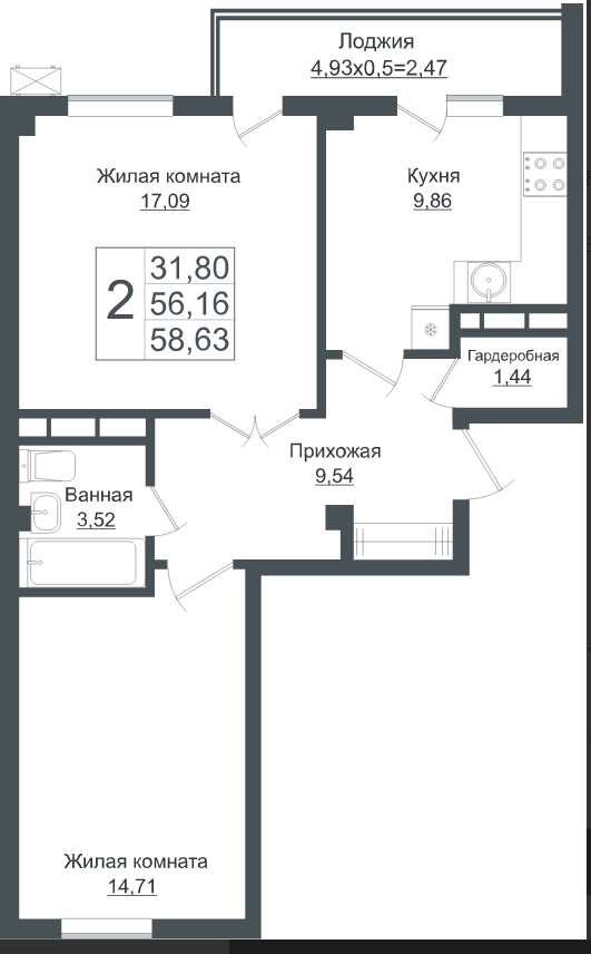 Продается 2-х комн. новостройка, 61 кв.м., 4/7 эт