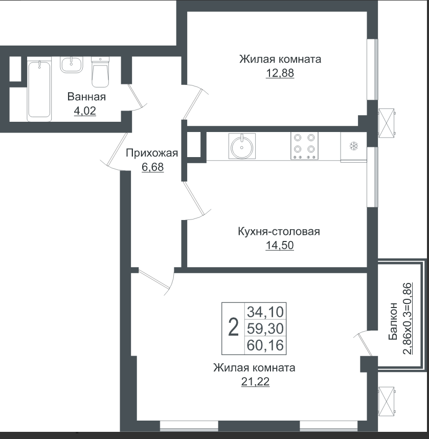 Продается 2-х комн. новостройка, 61 кв.м., 5/7 эт