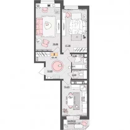 Продается 2-х комн. новостройка, 69 кв.м., 9/19 эт