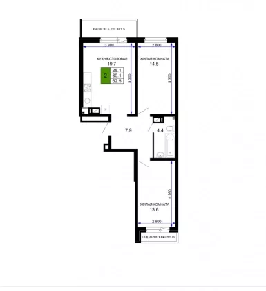 Продается 2-х комн. новостройка, 64 кв.м., 15/16 эт