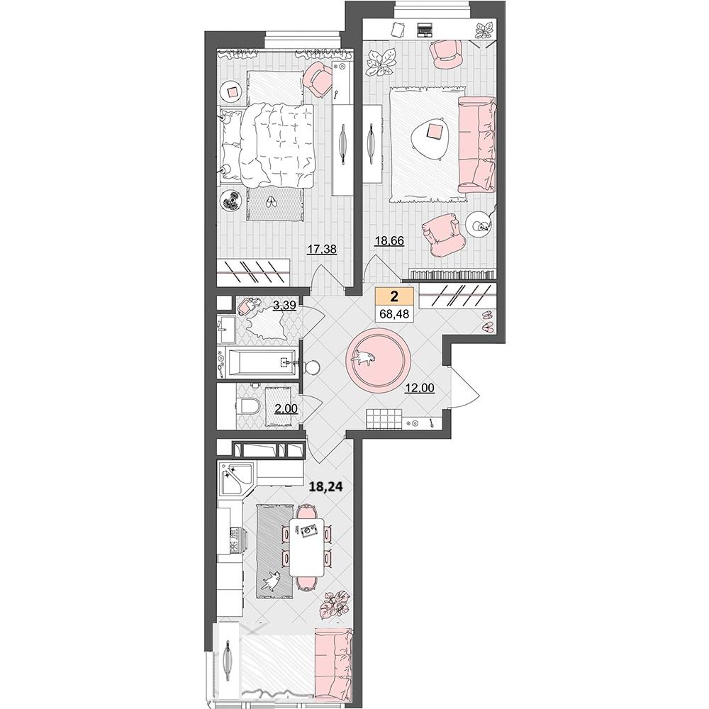 Продается 3-х комн. новостройка, 71 кв.м., 12/21 эт