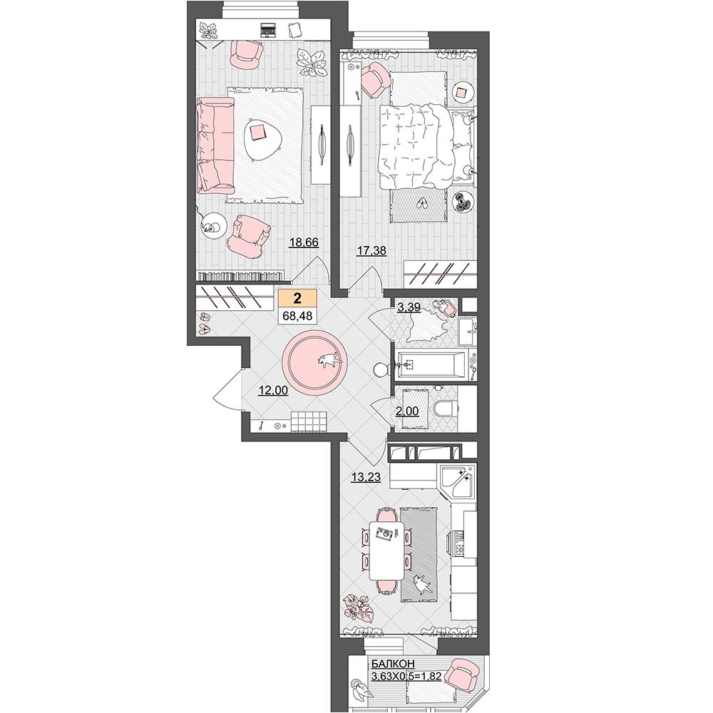 Продается 2-х комн. новостройка, 71 кв.м., 4/21 эт