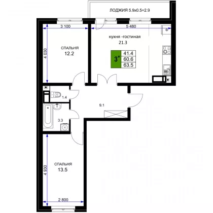 | Комнат в квартире | 2 |