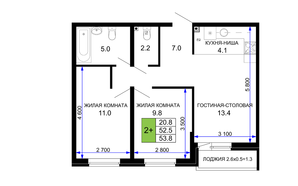 | Площадь, кв.м. | 55 |