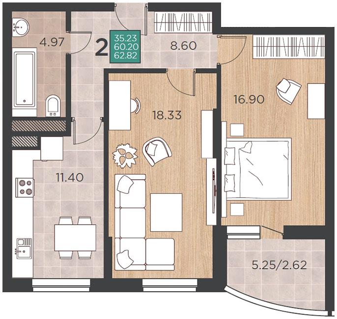 Продается 2-х комн. новостройка, 64 кв.м., 3/16 эт