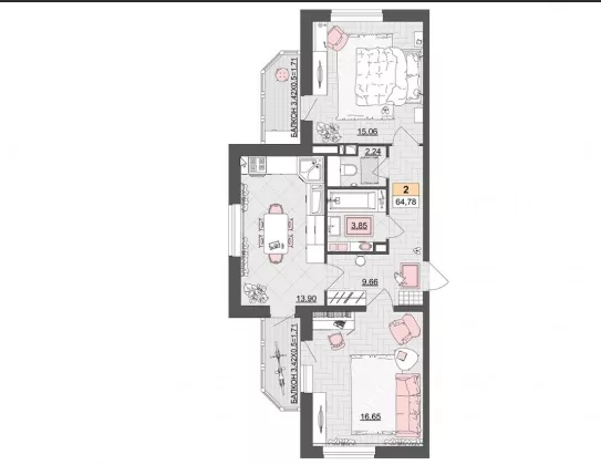 Продается 2-х комн. новостройка, 65 кв.м., 7/16 эт