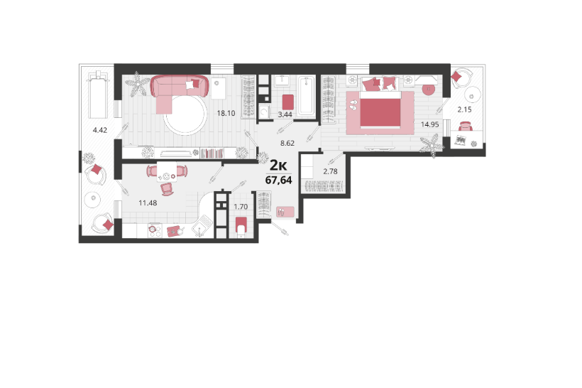 Продается 2-х комн. новостройка, 66 кв.м., 8/18 эт