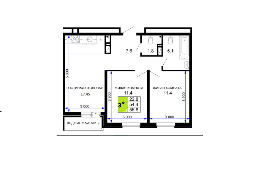 Продается 2-х комн. новостройка, 56 кв.м., 7/16 эт